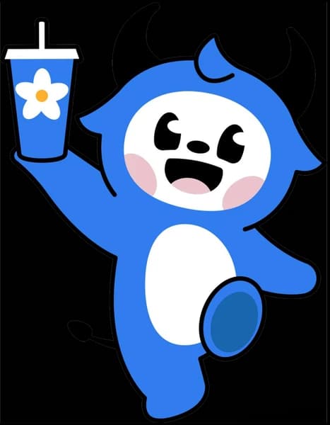 Bing Chun mascot character holding a bubble tea drink